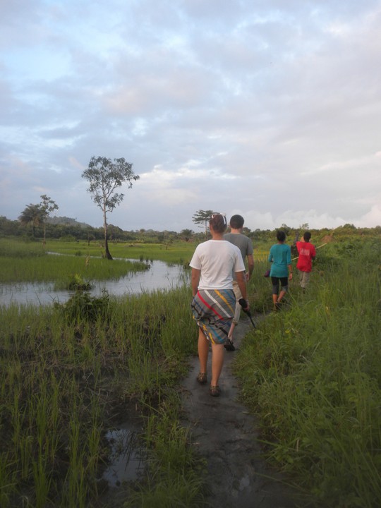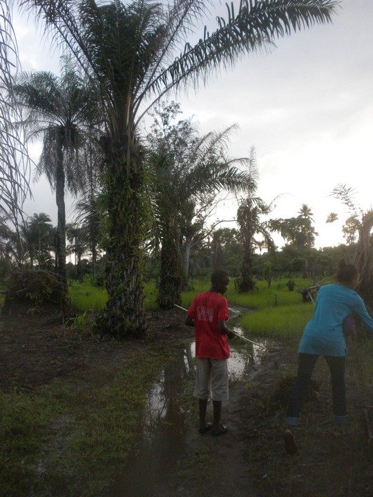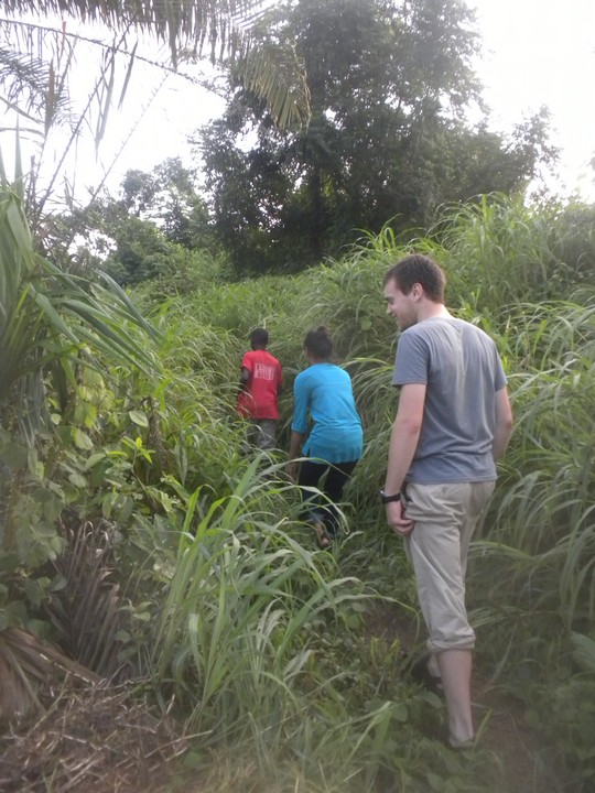 Obama gave us the Krio assignment of going to a tailor shop and getting the names of twenty different styles. The tailor we found was able to name two. I led an after school bush walk towards the village of Baka, but by the time I had actually assembled everyone, we had less than an hour of daylight and were forced to stop short. While I was out, Daryn stopped by to talk to my family about my progress brooking, cooking, and speaking Krio.