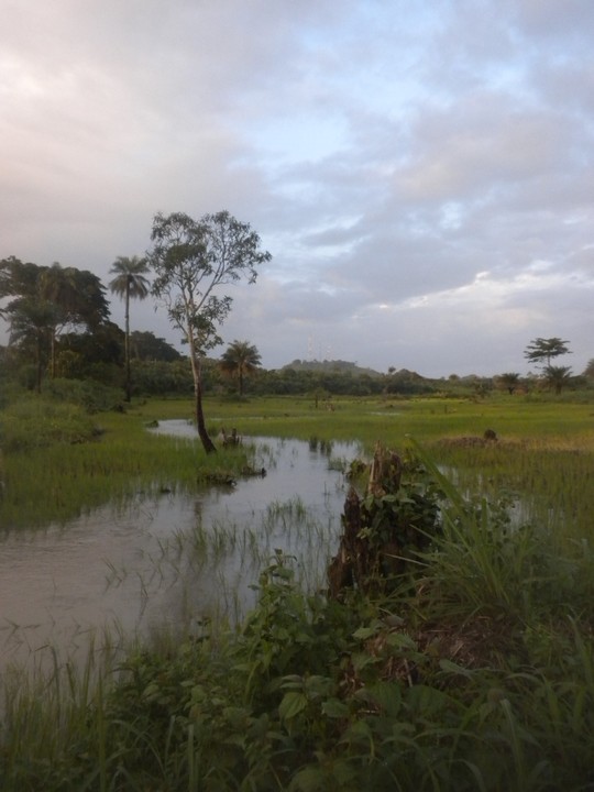 I had arranged to go hiking with Bob the teacher at 8. I called him and he claimed to be 'coming right now'. I called him back at 8:45 and he informed me that he was 'coming right now' (incidentally, this is one of the trainees' favorite Krio phrases: 'A de kom jis now'). When he did arrive at 9:30, he took me back to his house to pick up his camera.