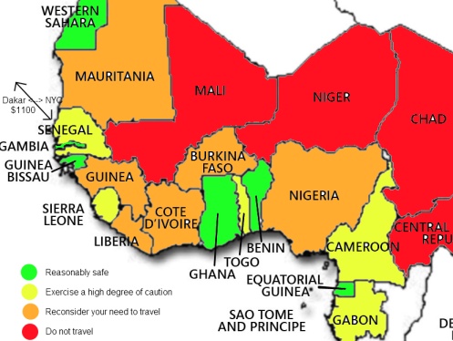 | Need sponsorship - except in Accra, Niamey - 30-day visa, $100 |